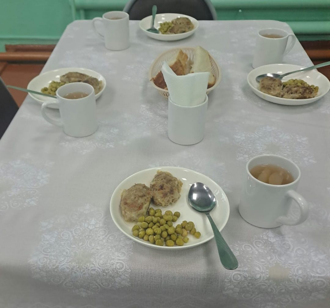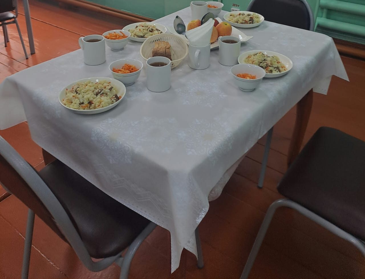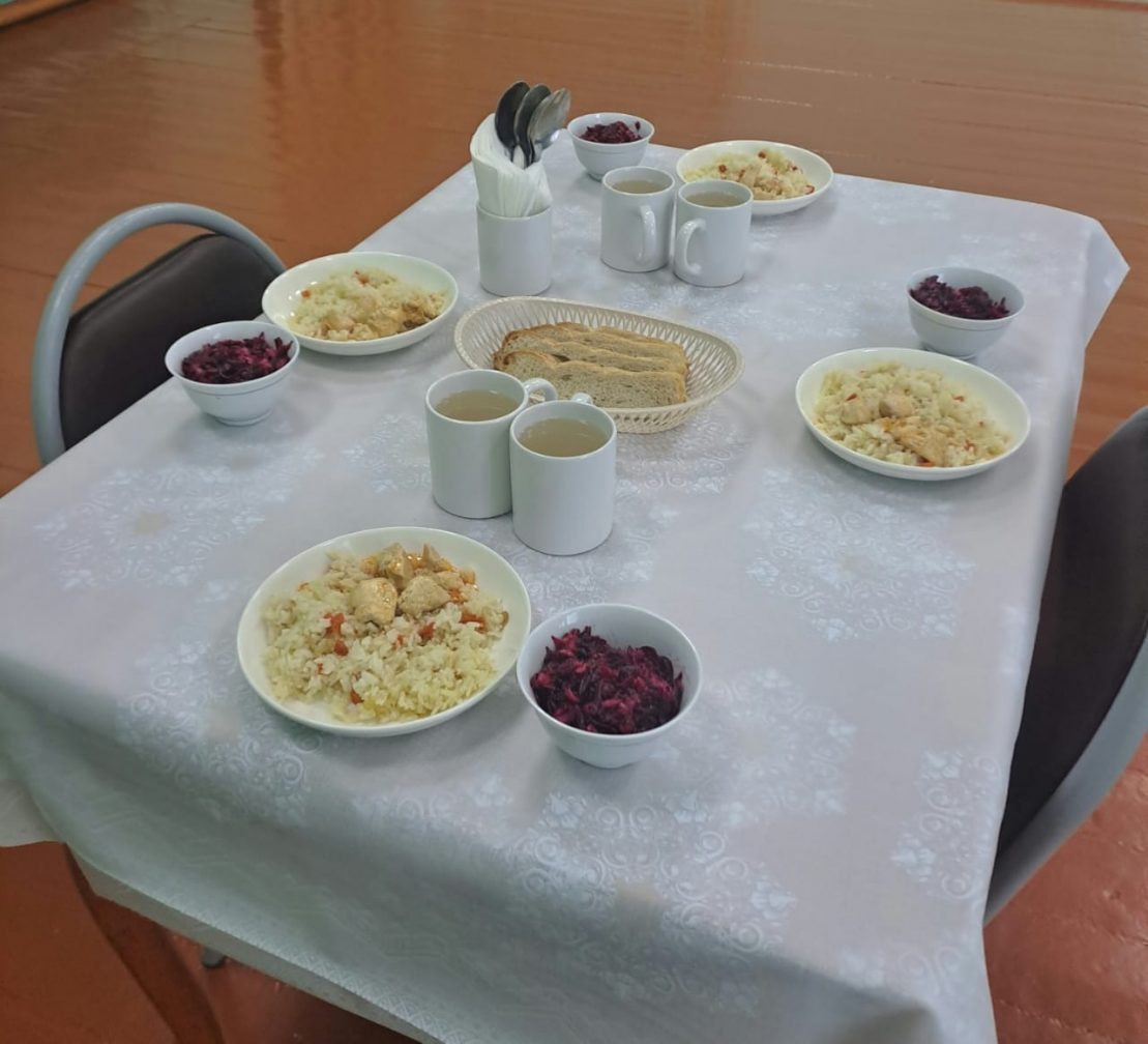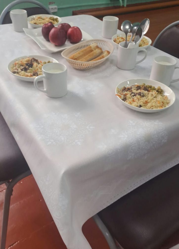 24.01.2024г. Меню: суп гречневый, плов(говядина),салат из свежих овощей, кисель, вафля, яйцо вареное, хлеб.