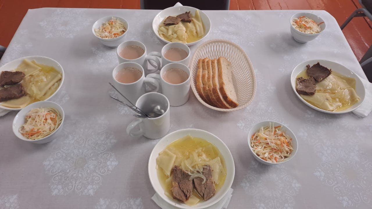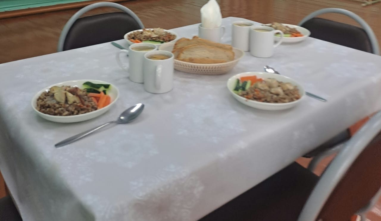 19.02.2025г. Меню: гуляш (говядина), гречневая рассыпчатая, сузбеше, чай с сахаром, хлеб.
