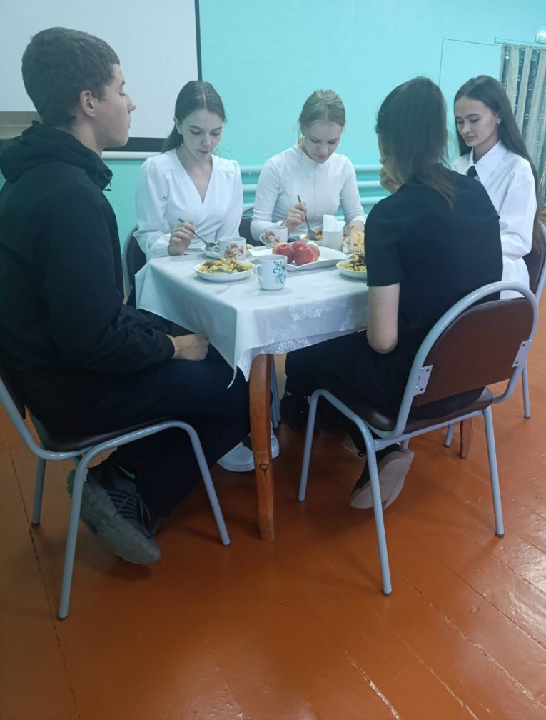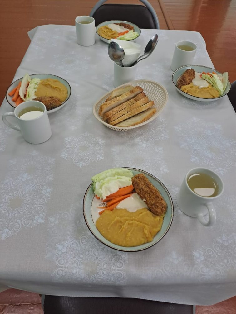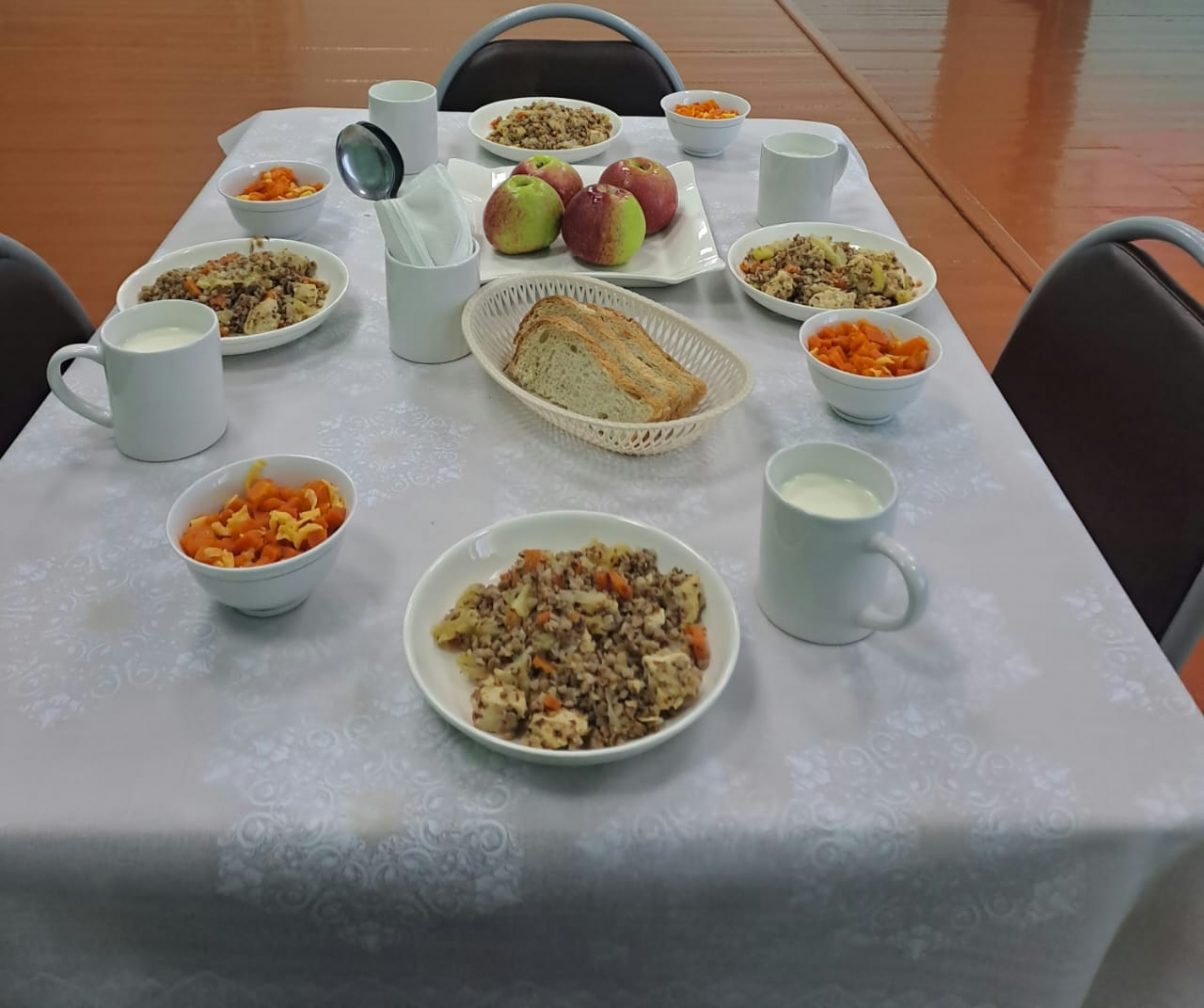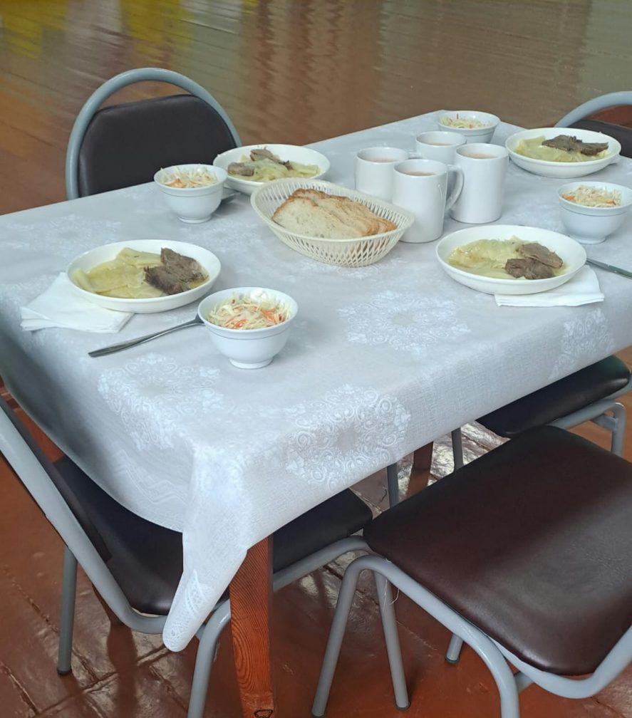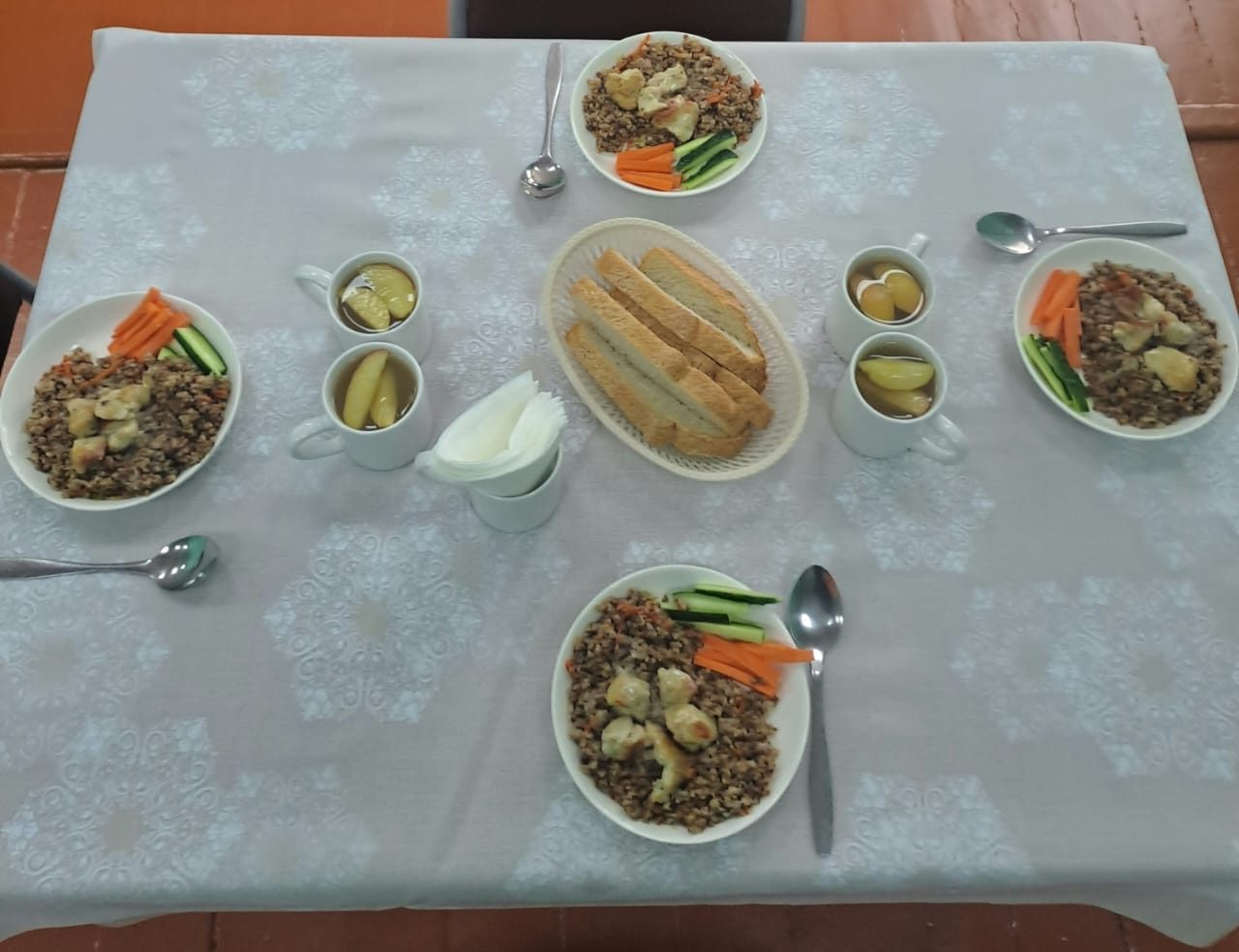 04.03.2025г. Меню: гуляш (говядина), гречка рассыпчатая, сузбеше, чай, хлеб.