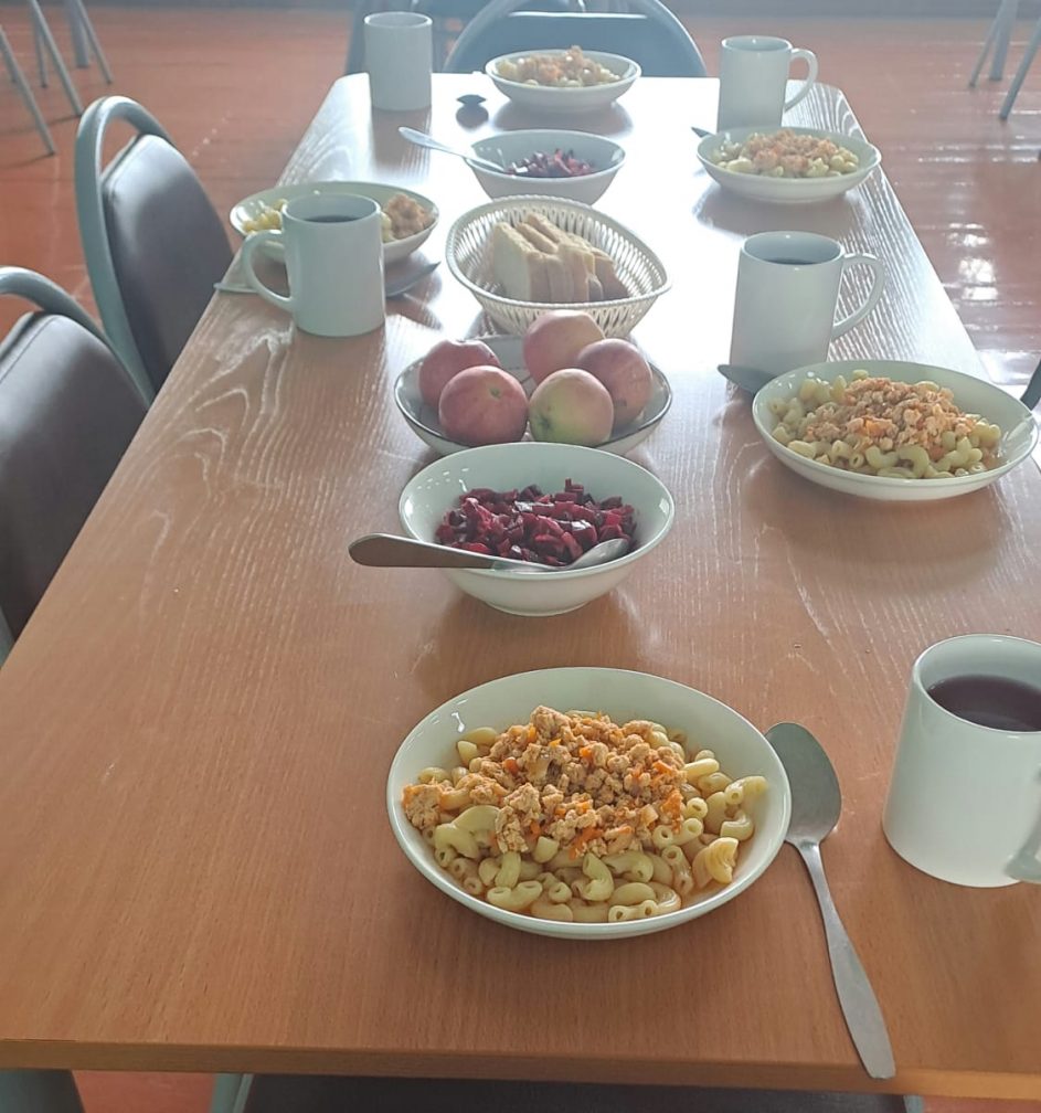 10.11.2025г. Меню: салат с свеклой и сыром, паста Болоньезе из птицы, чай каркаде, яблоко, хлеб.