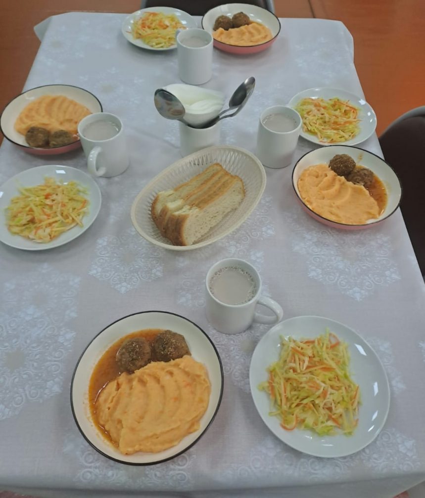 10.12.2025г. Меню: салат из вареных овощей, ёжики куриные, соус сметанный, макароны отварные, напиток Денсаулык, хлеб.
