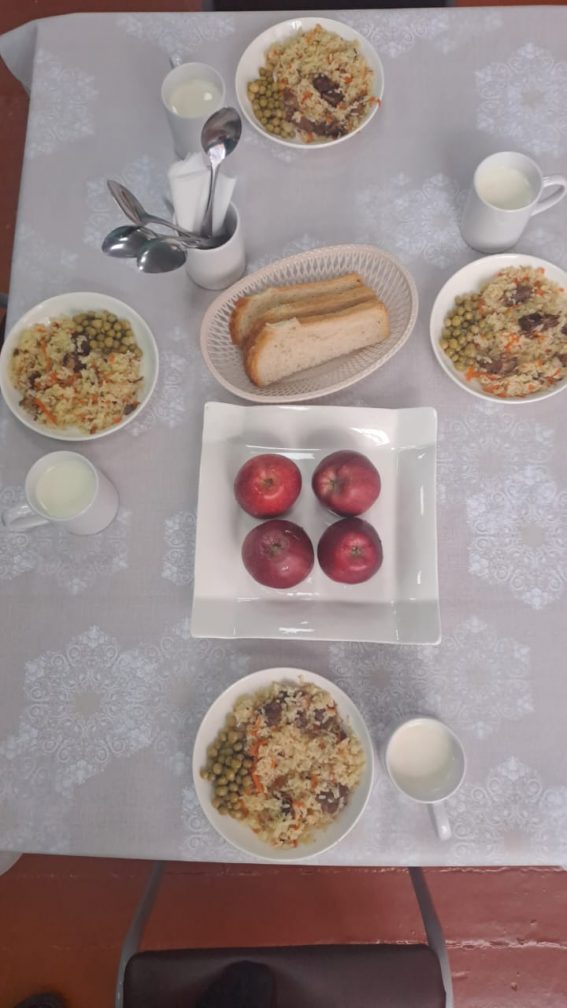 19.03.2025г. Меню: гуляш (говядина), гречка рассыпчатая, творог (сузбеше),чай с сахаром, хлеб.