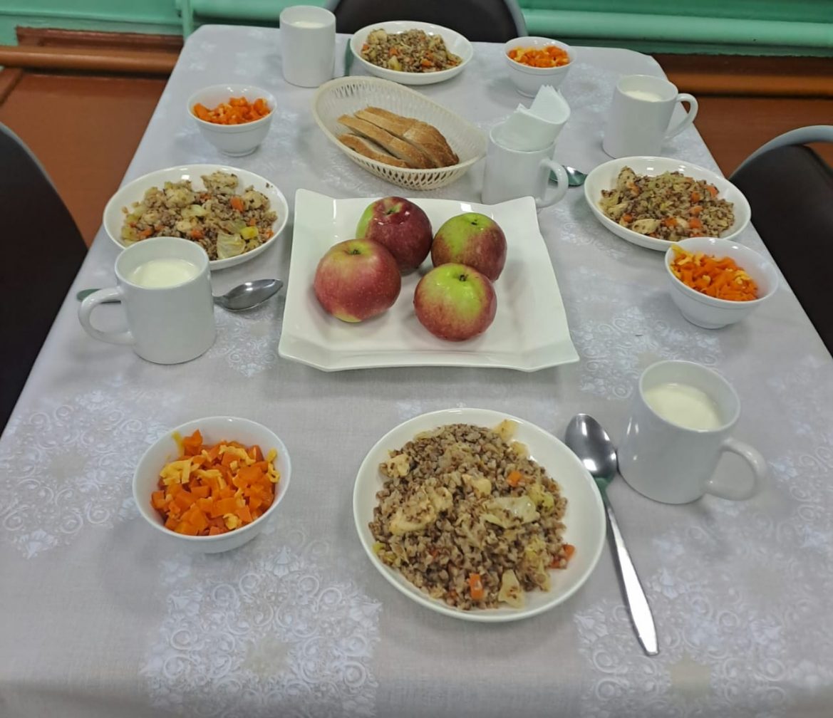 24.11.2025г. Меню:салат морковка с сыром, гречневая каша с овощами и птицей, молоко, яблоко, хлеб.