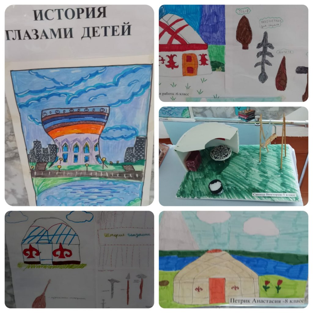 Тарих онкүндігінде «Тарих балалар көзімен» атты тақырыптық сурет және қолөнер көрмесі ұйымдастырылып, өткізілді.