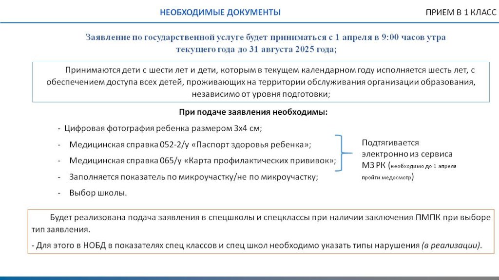 Прием в 1 класс